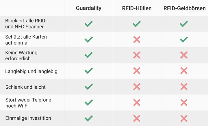 Wie sieht Guardality im Vergleich zu anderen RFID-Sperrmethoden aus?